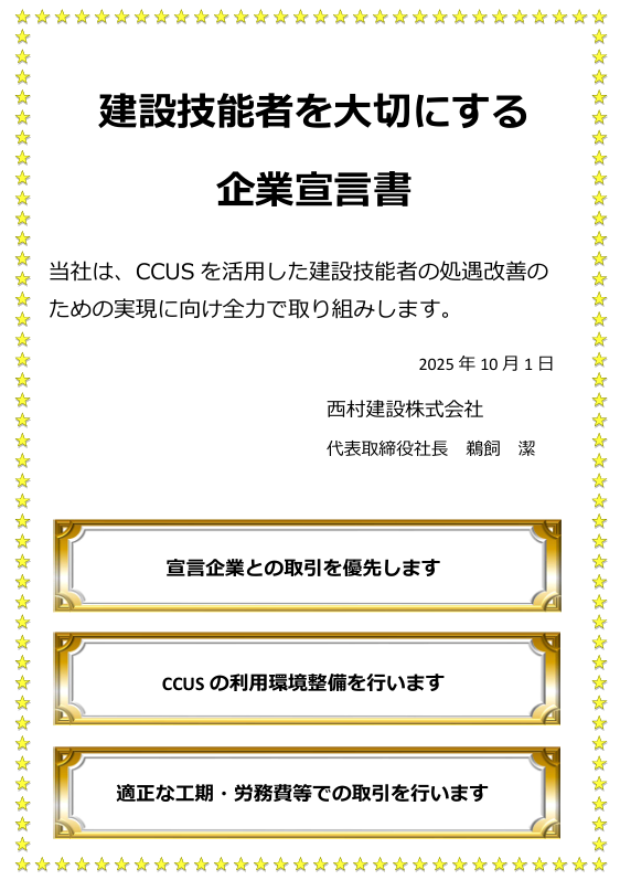 CCUS(建設キャリアアップシステム)を活用し、適正な工期・労務費等で取引を行います。